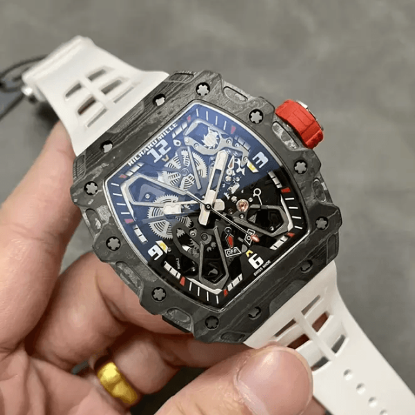 • 리차드밀 라파엘 나달 블랙 카본 스켈레톤 다이얼 화이트 러버 스트랩 RM35-03